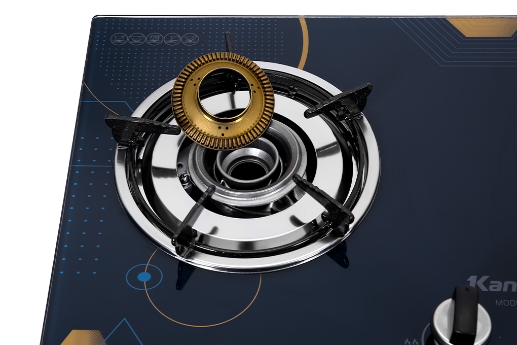 Đầu đốt bằng đồng thau bền bỉ, ít bị ăn mòn, nấu ngọn lửa xanh tiết kiệm gas và không làm đen đáy nồi chảo. Kiểu đầu đốt tiết kiệm gas dùng an toàn, hiệu quả. Lượng ga tiêu thụ của cả 2 lò là 0.4Kg/h