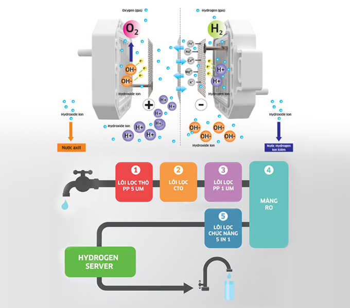 Điểm đặc biệt của dòng máy này là kết hợp giữa chức năng của máy lọc nước RO và tạo nguồn nước hydrogen ion kiềm tốt cho sức khỏe. Đầu tiên, máy vẫn đảm bảo tối ưu chức năng của máy lọc nước với công nghệ RO và tái khoáng, tạo nguồn nước đạt chuẩn uống liền. Tiếp theo, công nghệ điện phân nước có khả năng loại bỏ tác nhân gây lão hóa, chăm sóc cơ thể.