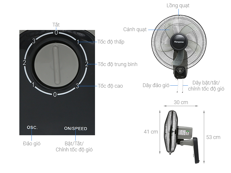 Quạt gắn tường KG723 của Kangaroo có 3 tốc độ gió dễ dàng lựa chọn. Trang bị điều khiển dây rút dễ bật tắt, bền bỉ với thời gian.