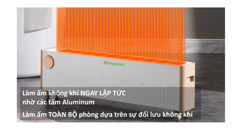 Nguyên lý làm ấm dựa trên việc làm nóng các tấm Aluminum, nhờ đó gián tiếp làm nóng không khí xung quanh Nguyên lý đối lưu không khí: không khí nóng bay lên cao, không khí lạnh xuống thấp, khi luồng không khí nóng luân chuyển trong phòng sẽ giúp toàn bộ phòng ấm lên